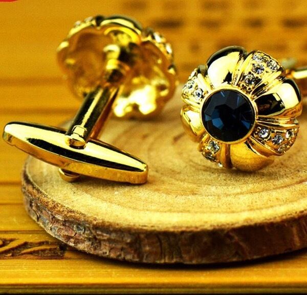 18K純金コーティングキラキラ1ポイントゴールドカフスボタン