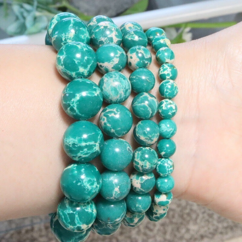 533 天然石12mm インペリアルジャスパー【グリーン】ブレスレット