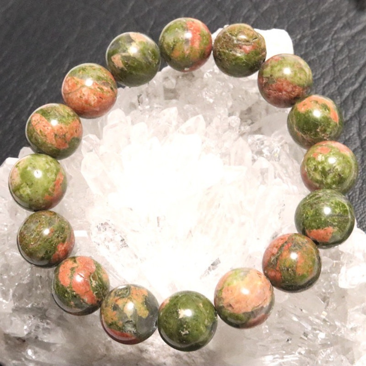 ユナカイトは決して派手さはない石ですが、この石は乱れがちな精神状態や感情、肉体のバランスを安定した状態に保つ助けになる石です。