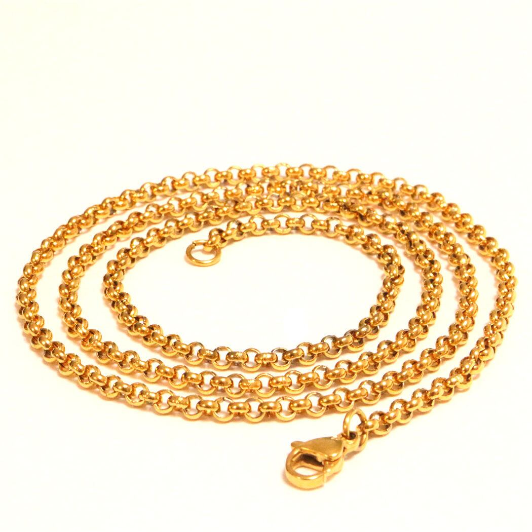 着用イメージ写真はモデル男性で、60㎝長さのカラーゴールドのイメージ写真です。