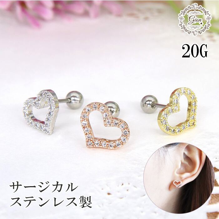 632 ハートのジルコニアボディピアス 軟骨ピアス ステンレスピアス 片耳分