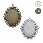 786 ペンダントパーツ ミール皿 楕円型 アンティーク カン付き レジン枠 ハンドメイド素材 1個