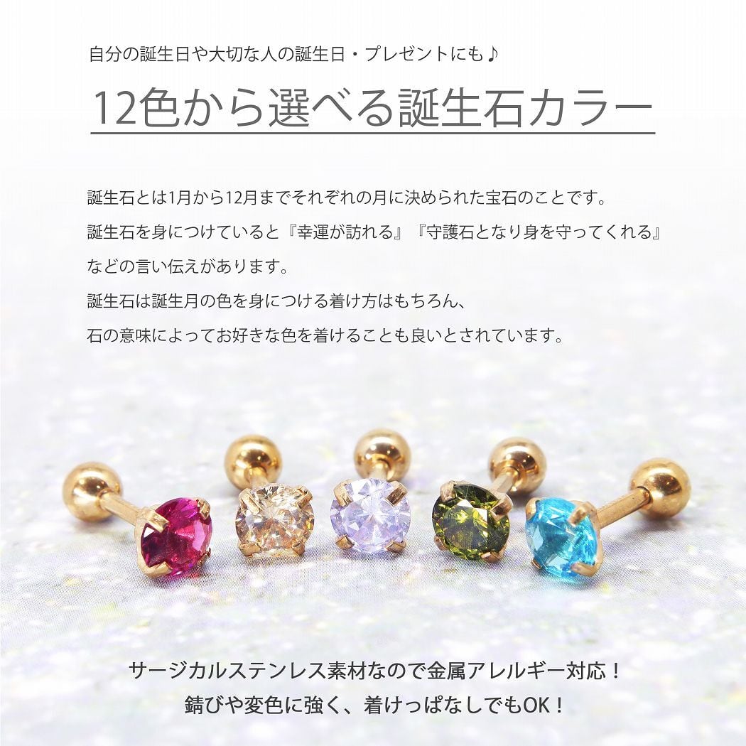 879 選べるカラー 誕生石ピアス ボディピアス 軟骨ピアス ストレートバーベル 片耳