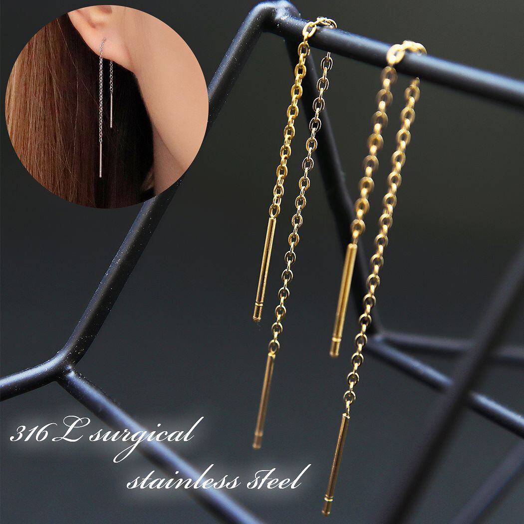 935 サージカルステンレス アメリカンピアス シンプル ゴールド シルバー チェーン