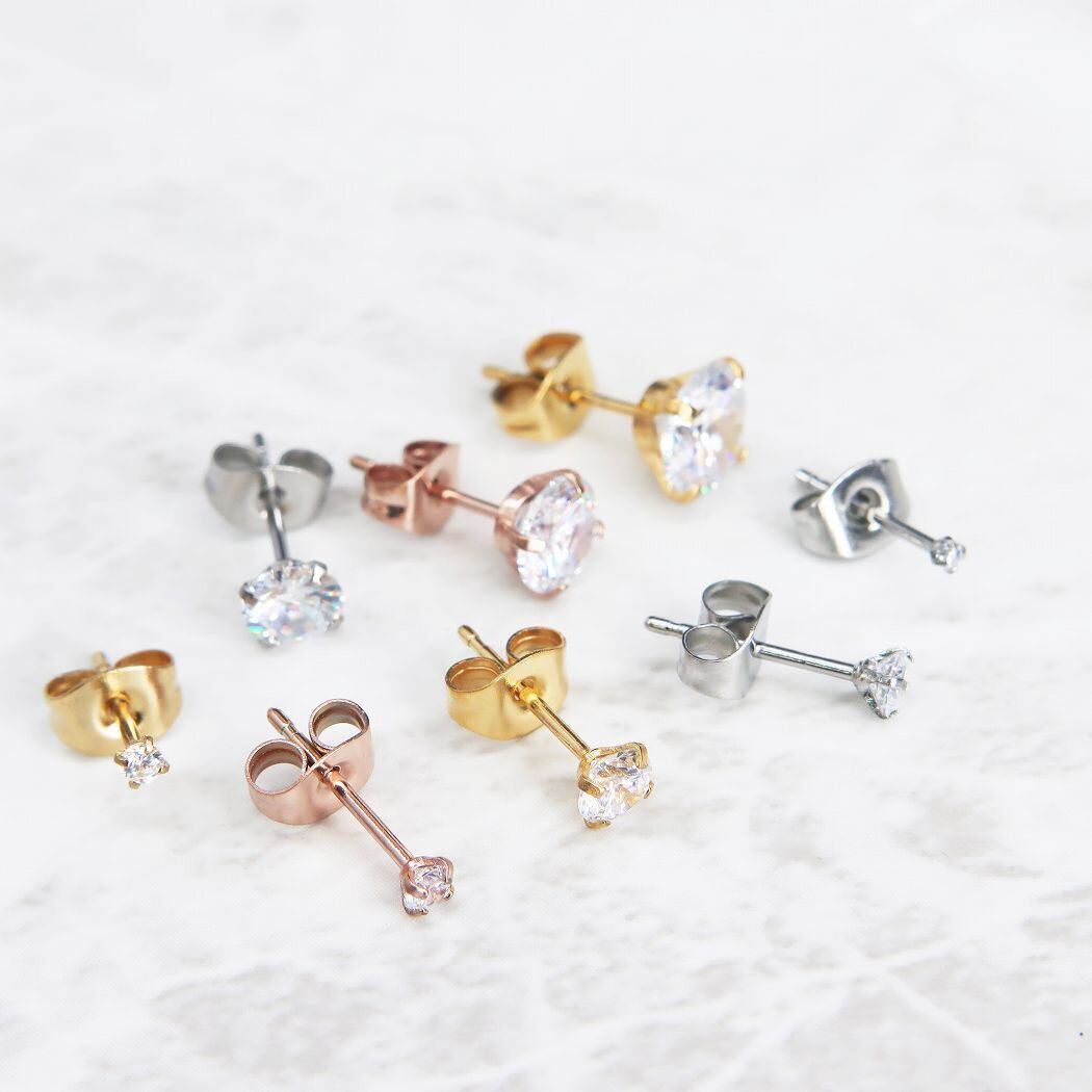 991 一粒 ジルコニア 4本爪 ピアス スタッド キュービックジルコニア サージカルステンレス