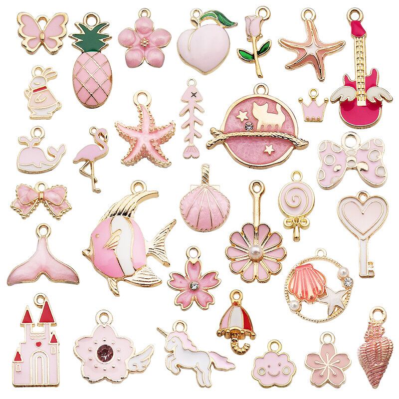1084 ピンク チャーム カン付き アクセサリーパーツ アソート 31個セット