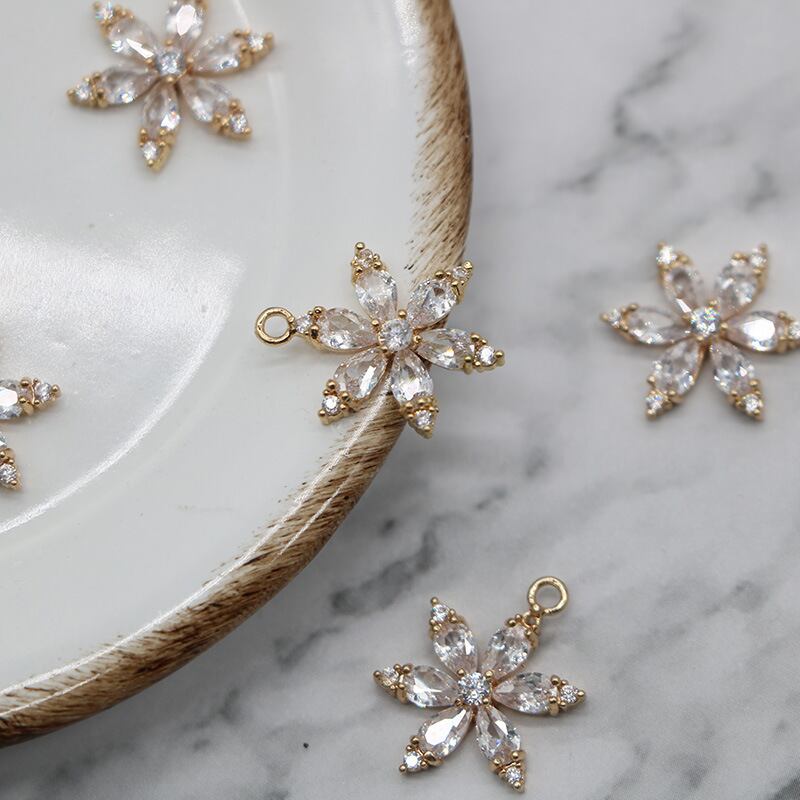 1140 高品質 ジルコニア チャーム カン付き アクセサリーパーツ ゴールド 2個