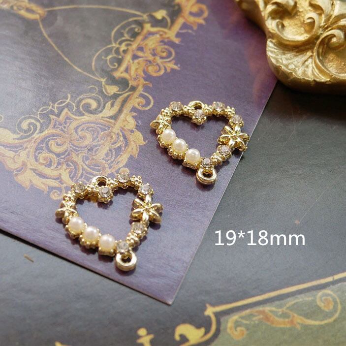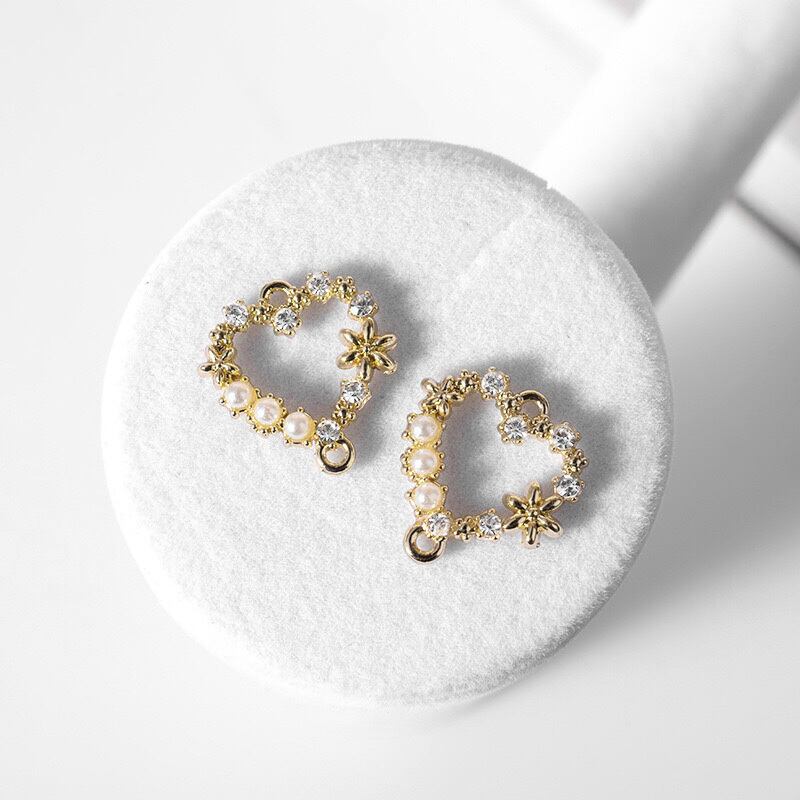 1146 両カン付き ビジュー ジルコニア パール チャーム アクセサリーパーツ 2個